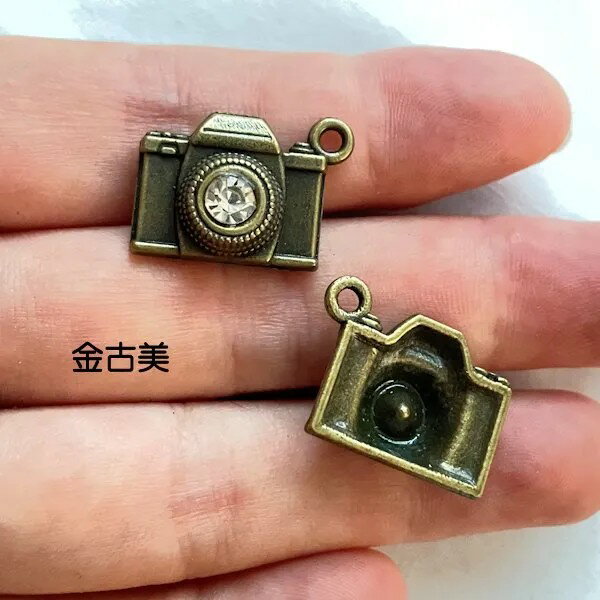 【ハンドメイドパーツ】素材アンティーク風・メタルチャーム・デコ・金古美・カメラ【c8f3p】
