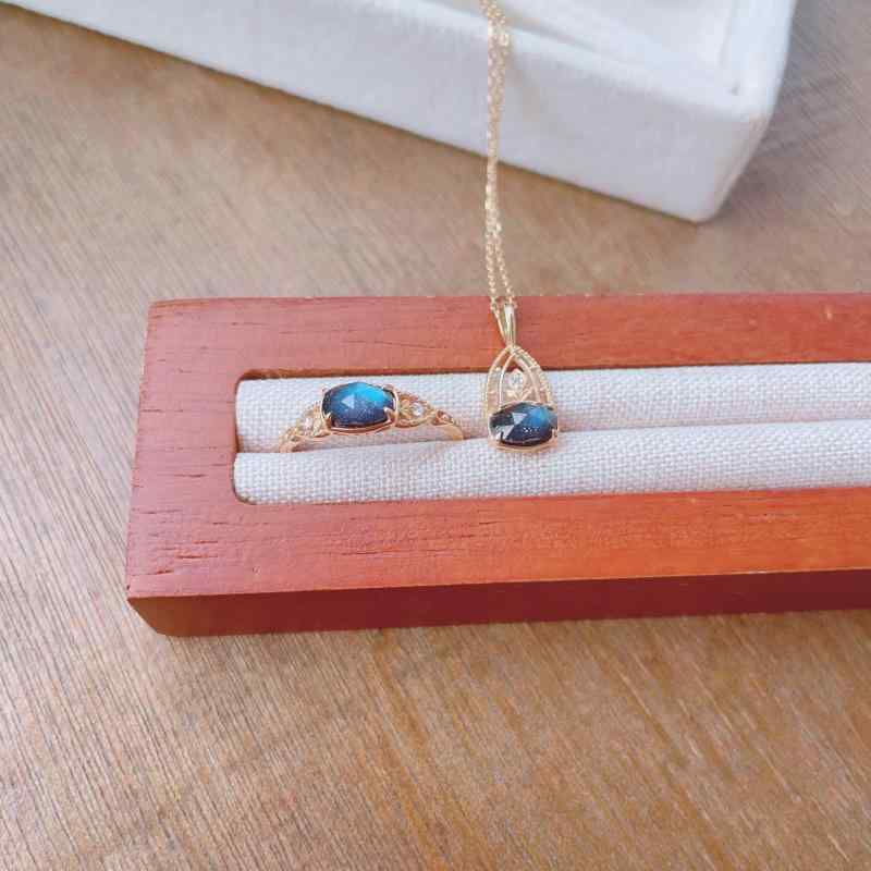 トップのブルーホークアイが指先を引き立ててくれるアイテム。