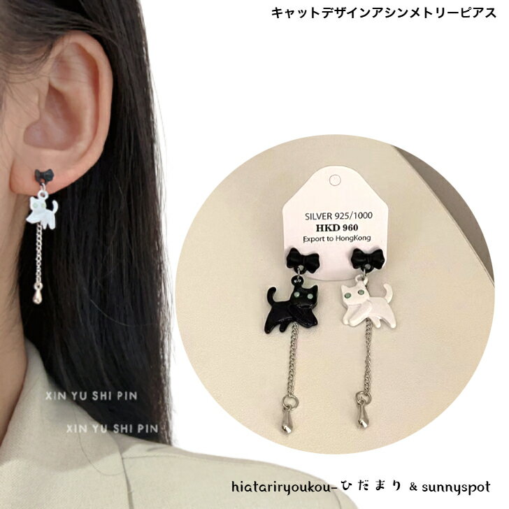 キャットデザインアシンメトリーピアス おとな かわいい 猫 ねこ 揺れる パーティー おしゃれ カジュアル お出かけ プレゼント ちいさめ 黒 白 ギフト 誕生日 クリスマス カジュアル プチプラ ポイント消化 A