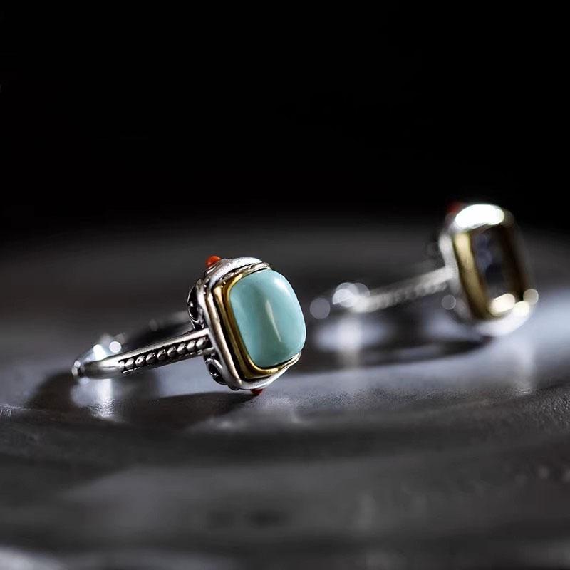 アルサメイア リング 2DROP ドゥルージー エメラルド スクエア ドロップ バイカラー 22Kゴールドプレーテッド トルコジュエリー