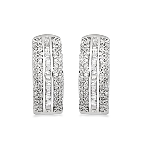 【中古】【未使用・未開封品】Jewelili スターリングシルバー 1/2 cttw 天然ホワイトバゲットとラウンドシェイプダイヤモンドスタッドピアス