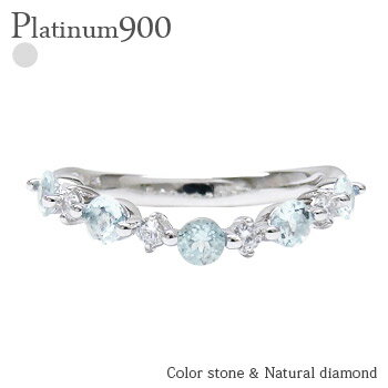 アクアマリン 3月誕生石 ダイヤモンドリング 0.13ct <ウェーブ> プラチナ900 pt900 指輪