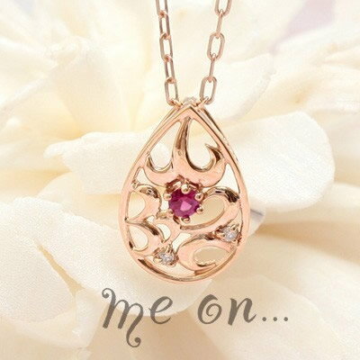 【メール便送料無料/代引き不可】【me on...】K10ピンクゴールド唐草模様ルビー・ダイヤモンド・ドロップモチーフネックレス【64425】