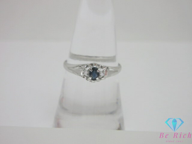 Pt900 プラチナ サファイア ダイヤモンド 付 デザイン リング 指輪 15号 メレ 宝石 ジュエリー アクセサリー 【中古】【送料無料】th13325