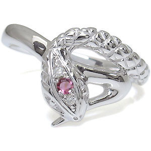 送料無料 ピンクトルマリン 指輪 メンズリング プラチナ スネーク 蛇