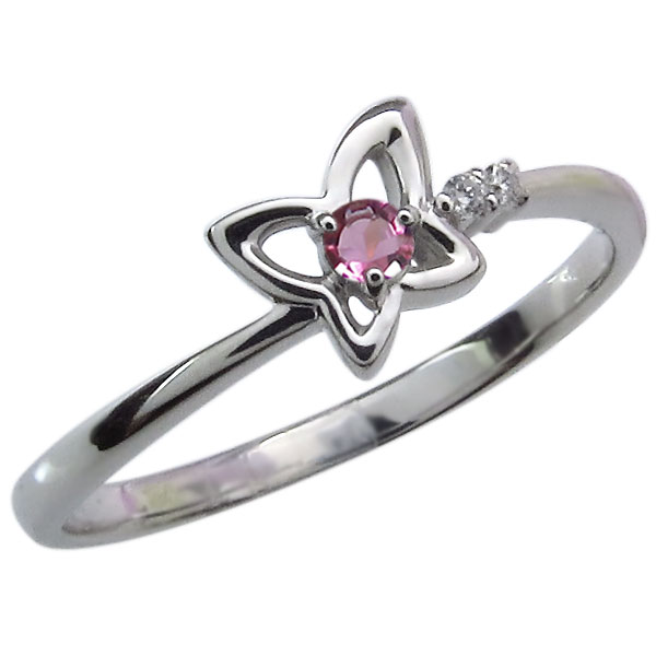 送料無料 蝶 ピンクトルマリン バタフライ リング 10金 指輪 ピンキーリング