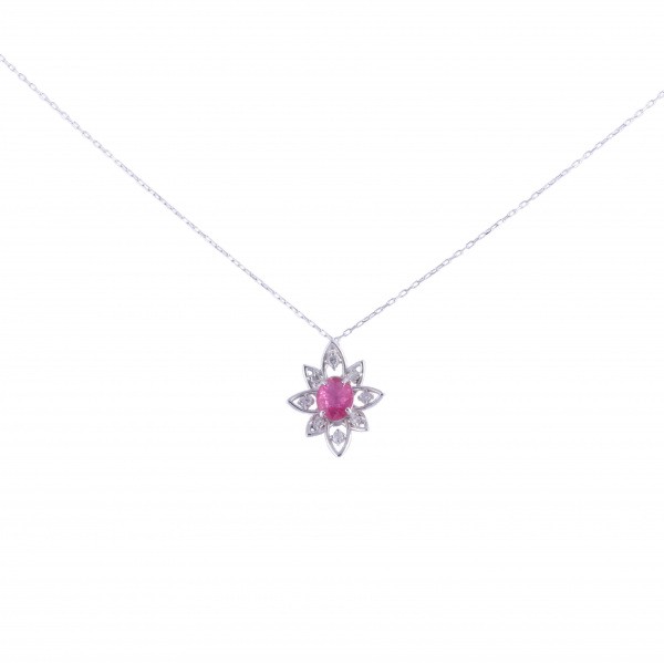 K18ホワイトゴールド ルビー ダイヤモンド ネックレス