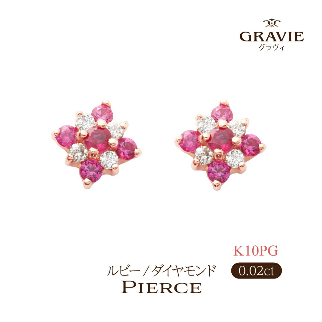 かわいい♪18金PG ハートシェイプカットルビーピアス