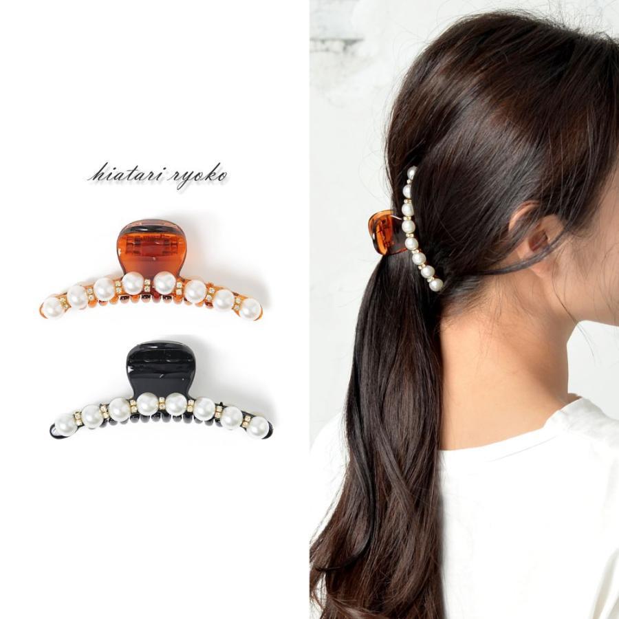 ヘアクリップ パールビーズとラインストーンのビッグバンスクリップ 上品 大人かわいい ハーフアップ