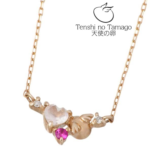 送料無料 Tenshi no Tamago 天使の卵 天使の卵 K10 ピンクゴールド ネックレス 天使1715DRRQ ルビー ローズクォーツ ダイヤモンド ハート