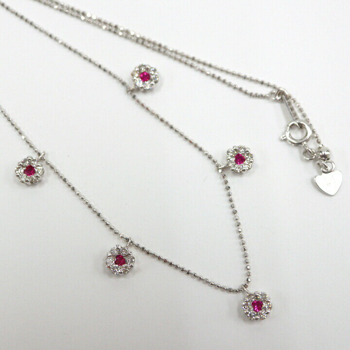 PT900/PT850 ハート ルビー ネックレス 0.444CT【中古】