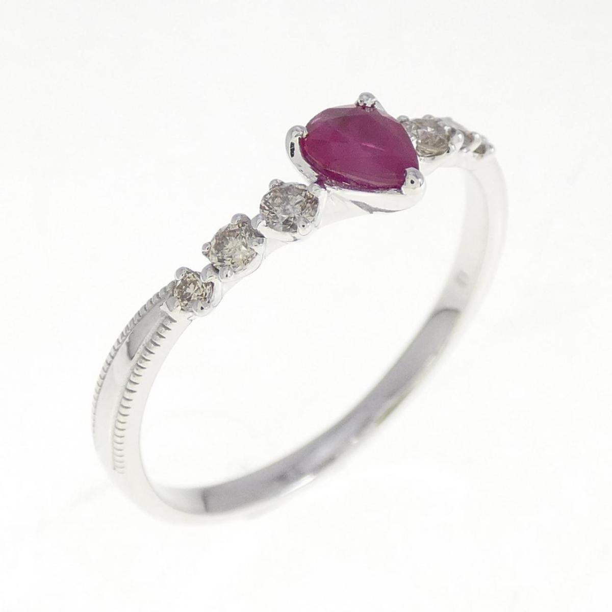 K18WG ホワイトゴールド ルビー0.67ct ハートモチーフ リング 指輪 レディース 12号 【中古】