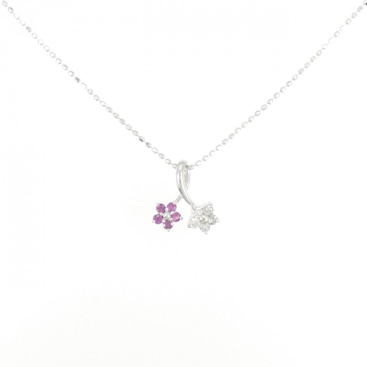 【KOMEHYO】 K14WG/K18WG フラワー ルビー ネックレス【中古】 【コメ兵】