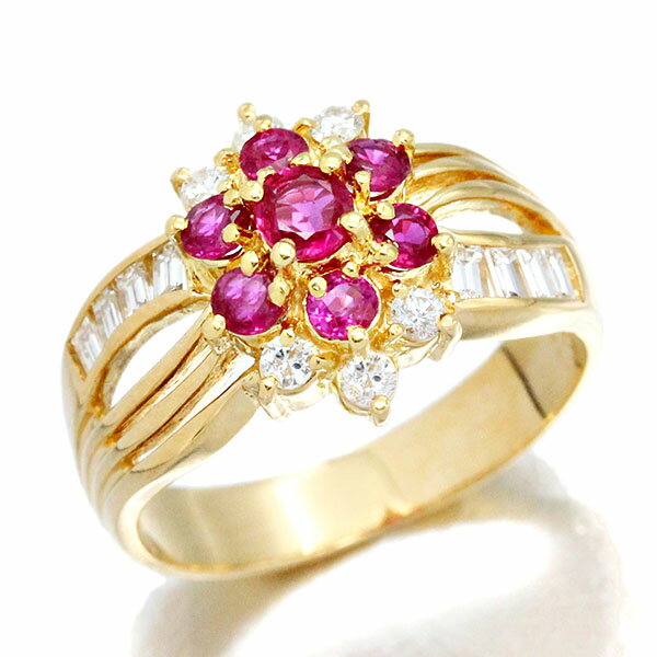 新品同様【ジュエリー】ルビーリング/ダイヤモンド/K18YG/5.1g/17号/指輪/レディース/アクセサリーイエローゴールド