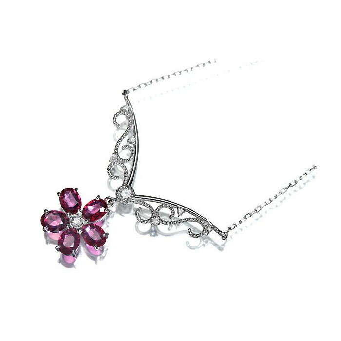 K18イエローゴールド ダイヤモンド ルビー ネックレス