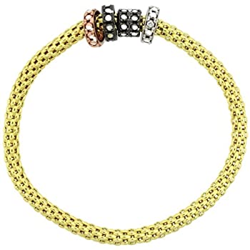 【中古】【輸入品・未使用】スターリングシルバーストレッチバングルブレスレットイエローゴールド仕上げ3色サークルビーズチャームアクセント、3?/ 16インチ幅