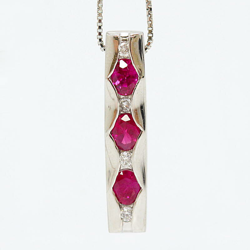 ルビーネックレス 長方形 ルビー 0.60ct ダイヤモンド 0.08ct プラチナ Pt850/900 約45cm 30426【中古】