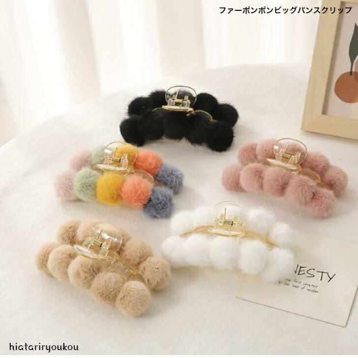 ヘアクリップ ファーポンポンビッグバンスクリップ おとな かわいい 秋冬 ハーフアップ まとめ髪 30代 40代 50代 プレゼント