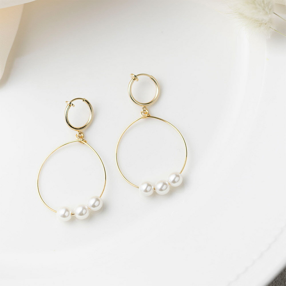 華奢なゴールドカラーのフープに、パールをあしらって上品な可愛らしさをプラス。コーディネートに華を添えたい時に1つあると重宝すること間違いなし