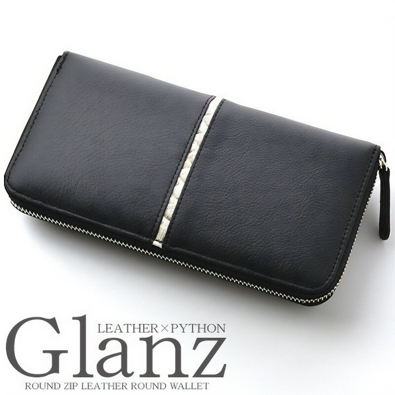 ヘビ革ライン ラウンドファスナー長財布 メンズ 送料無料