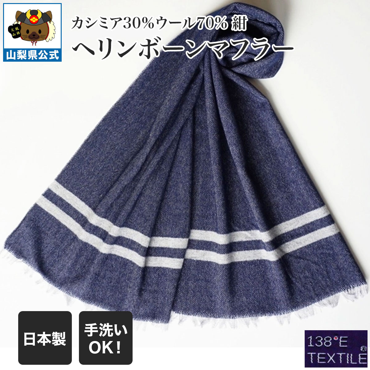 カシミア30%ウール70%糸使用 紺 ヘリンボーンマフラー