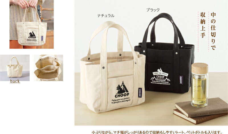 小ぶりながら、マチ幅がしっかりあるので収納しやすいトート。
