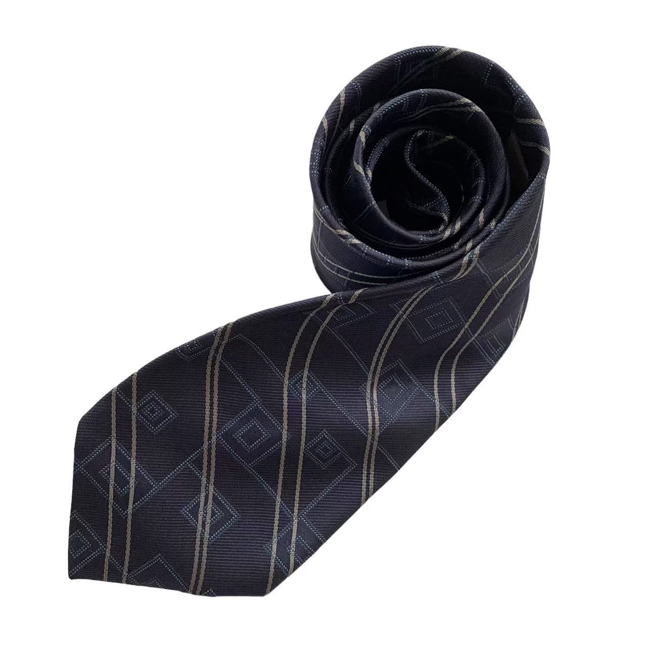 Calvin Klein カルバンクライン ネクタイ ブランド 小物 スーツ ファッション ネイビー 紺 シルバー 銀 四角 総柄 斜線 ストライプ シルク 日本製 紳士 メンズ