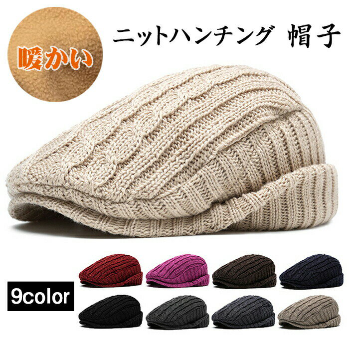 ニットハンチング帽子 秋冬用 メンズ ニット キャスケット 無地 紳士帽 カジュアル アウトドアキャップ レディース 防寒