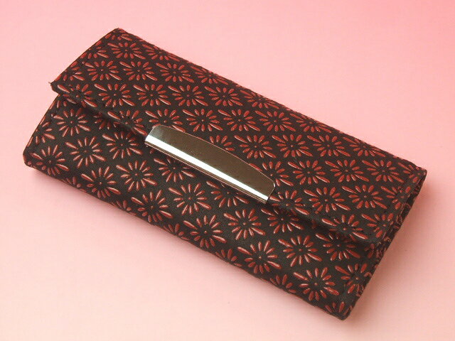 【印傳屋・印伝屋・いんでんや・INDEN-YA】 2205-1-041 花唐草柄(黒×黒) 仕切りの有るL字ファスナー式の小銭入れが付いた二つ折り財布です。