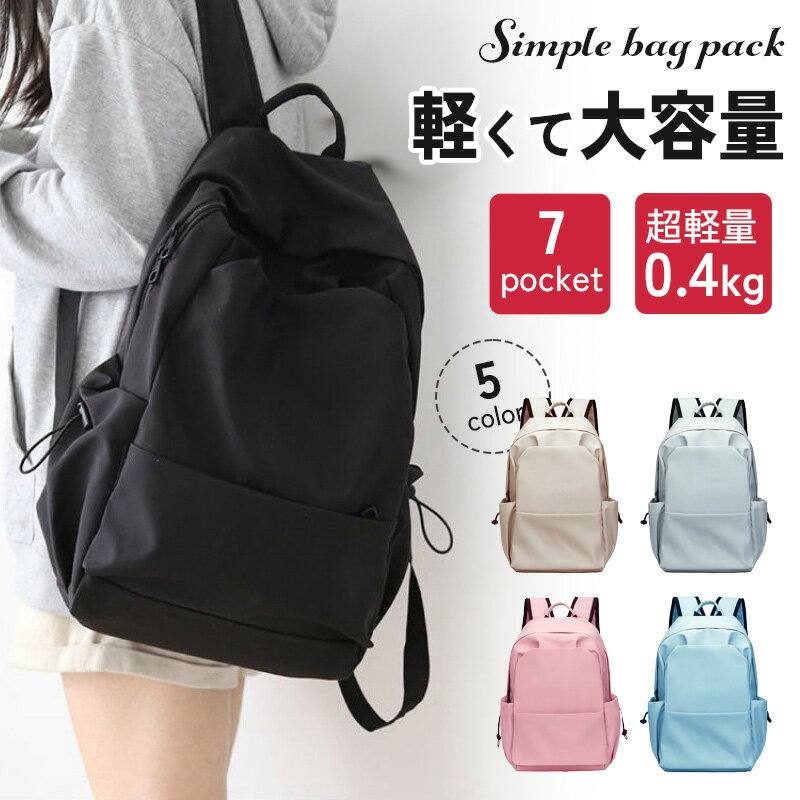 ユニセックス 男女兼用 軽量 大容量 撥水 シンプル リュックサック デイリーユース メンズ レディース パソコン ノートパソコン ブラック ライトグレー トラベルバッグ ビジネスバッグ