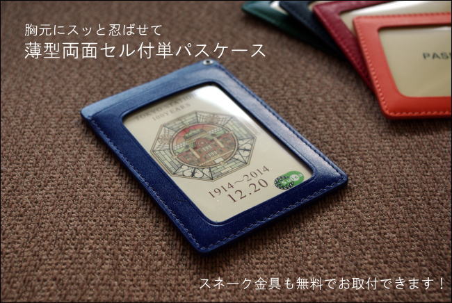 丈夫な牛革の薄型定期入スネーク金具無料でお取付できます!