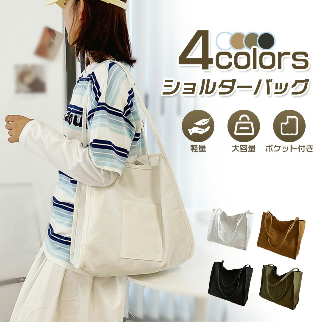 バッグ 肩掛け レディース 帆布 ショルダー ショルダーバッグ トートバッグ A4 大きめ 大容量 無地 黒 白 軽量 肩掛けバッグ 通勤 通学 シンプル カジュアル 丈夫 おしゃれ 手提げ ポケット カバン ショルダー ワンショルダー 洗える 女性 送料無料