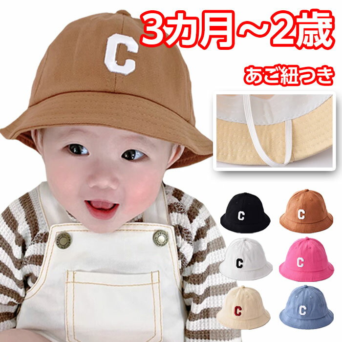 あご紐付きのシンプルなハットです。3カ月から2歳ごろまでお使いいただけます。