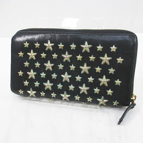 【中古】ジミーチュウ JIMMY CHOO 長財布 スタースタッズ ラウンドファスナー ブラック 黒系 レザー レディース 【ベクトル 古着】