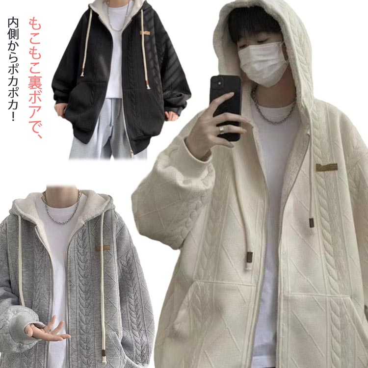 裏ボアジップアップパーカー メンズ パーカー ボアパーカー 裏起