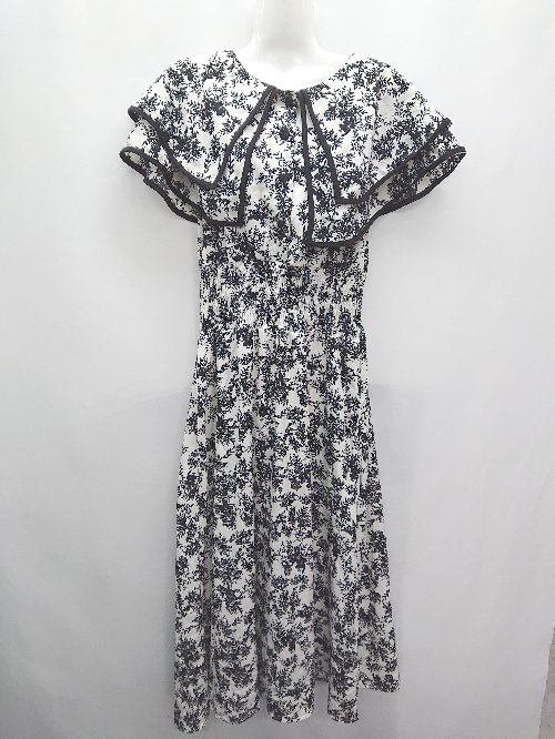 ◇ ⊂ pumpkin port パンプキンポート 総柄 フレンチスリーブ 膝下丈 ワンピース サイズM ブラック ホワイト レディース P 【中古】