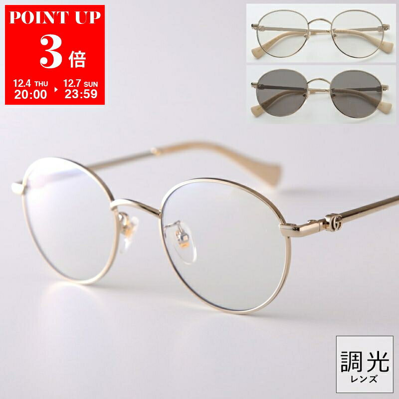 GUCCI グッチ サングラス GG1472SJ レディース メンズ ラウンド型 メタルフレーム 細フレーム クリングスタイプ GGロゴ 調光サングラス 調光レンズ アイウェア 001