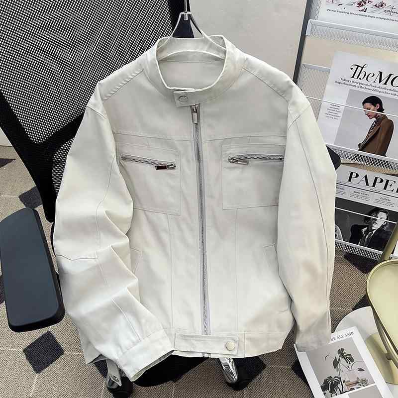 ジャケット 男女兼用 レトロ 短丈 ツイル 綿 高級感 クリーンフィット ワーク 立襟 野球風 ストリート