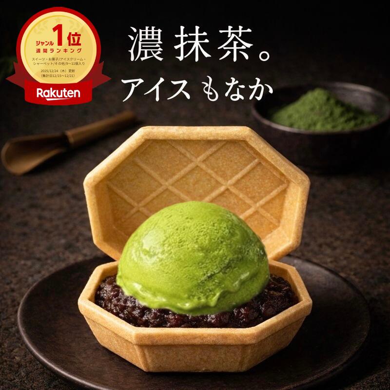 香り高い抹茶の深いコクと、ふっくら上品なあずきが重なり合う二層仕立て。パリッと香ばしい最中が広げる、極上の和の贅沢アイスです。ひと口で至福がほどける贅沢時間をお届けします。