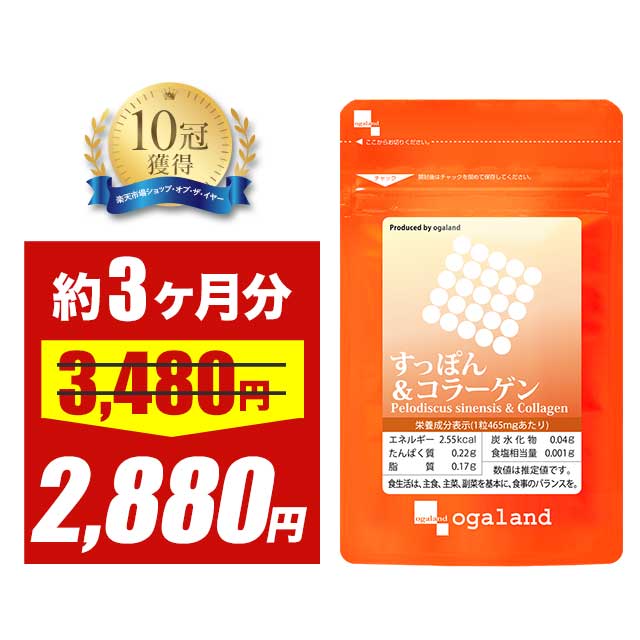 【12/3終了★タイムセールで398円】ぷるんと弾む美しさに!すっぽん由来のコラーゲンやアミノ酸に加え、エラスチンも配合。キレイを支える成分がたっぷり!