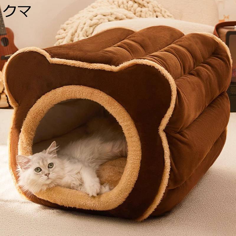 猫 ハウス 猫ベッド ペットベッド クマ もこもこ 犬 ベッド 小型犬 キャットハウス ペットクッション 寝床 猫小屋 寒さ対策 ソフトケージ 冬用 暖かい ぐっすり眠れる 休憩所 小型犬用 ブラウン 40*33*30CM