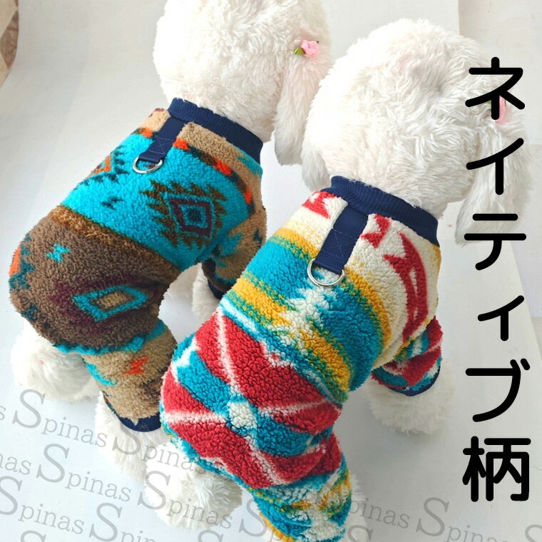 ネイティブ柄のお洒落なデザイン あったか可愛い もこもこ ふわふわ ワンピース ロンパース フェイクファー 暖かい カバーオール ドッグウェア 犬服 秋冬 抜け毛防止 冬服 コート アウター 保温 防寒 小型犬 おしゃれ オルテガ柄 ナバホ柄 送料無料