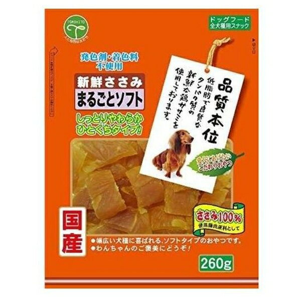◇友人 新鮮ささみ まるごとソフト 260g | 犬おやつ 犬用おやつ ささみジャーキー ソフトジャーキー 犬ジャーキー ドッグおやつ ドッグフード 国産ジャーキー 国内製造 無添加おやつ 低脂肪スナック 幼犬用 高齢犬用 ペットフード 鶏肉スナック プレミアムおやつ