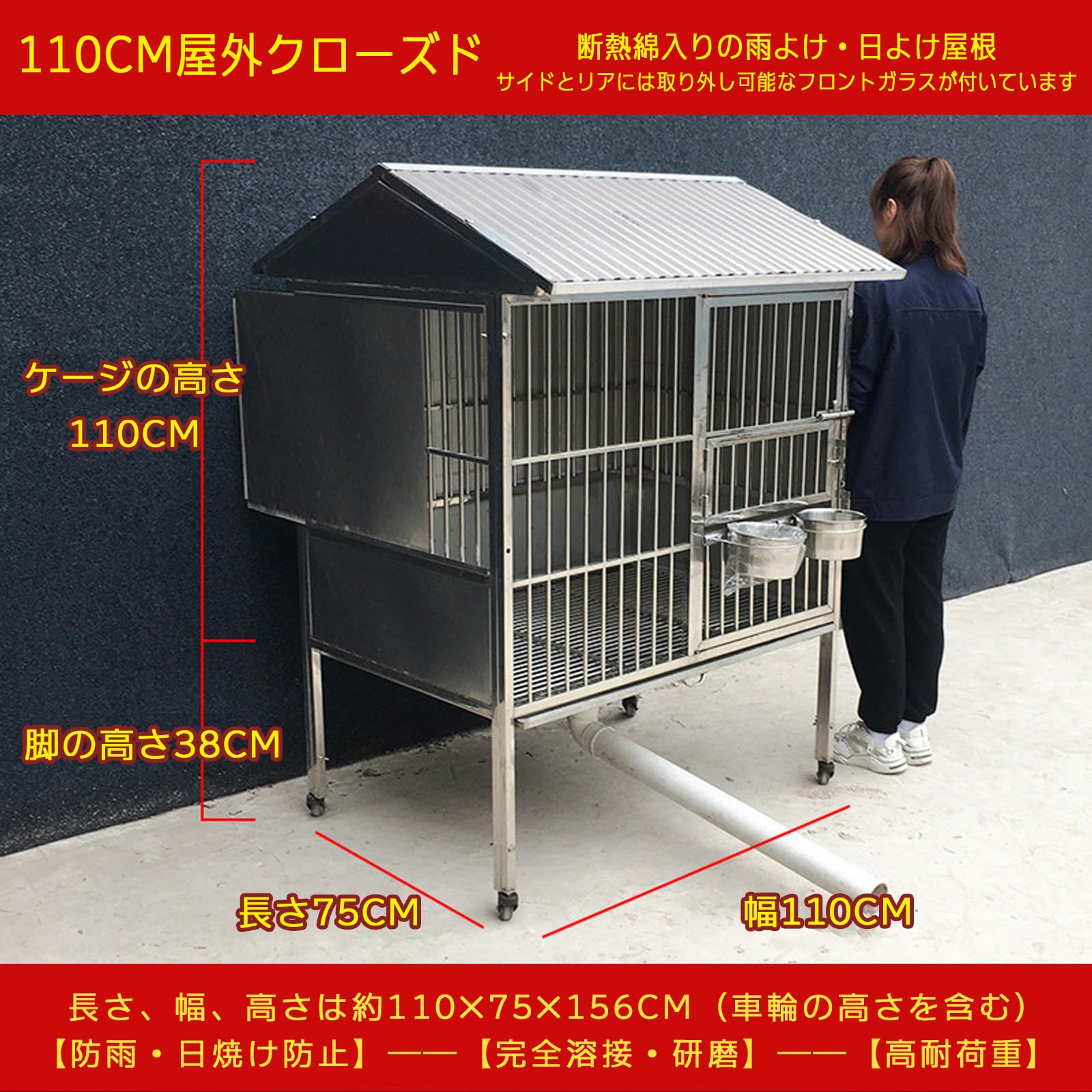大型ステンレススチール製犬用ケージ、屋外防雨、断熱、トイレ、トレイ、ユニバーサルホイール、あらゆる種類のペットに適した、一体型の2~3部屋の犬小屋、耐荷重500kg