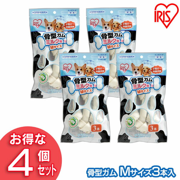 骨型ガム(ミルク味 M3本入) P-MG-3M (4個セット) アイリスオーヤマ【犬用 ドッグフード ガム 骨 犬のおやつ】