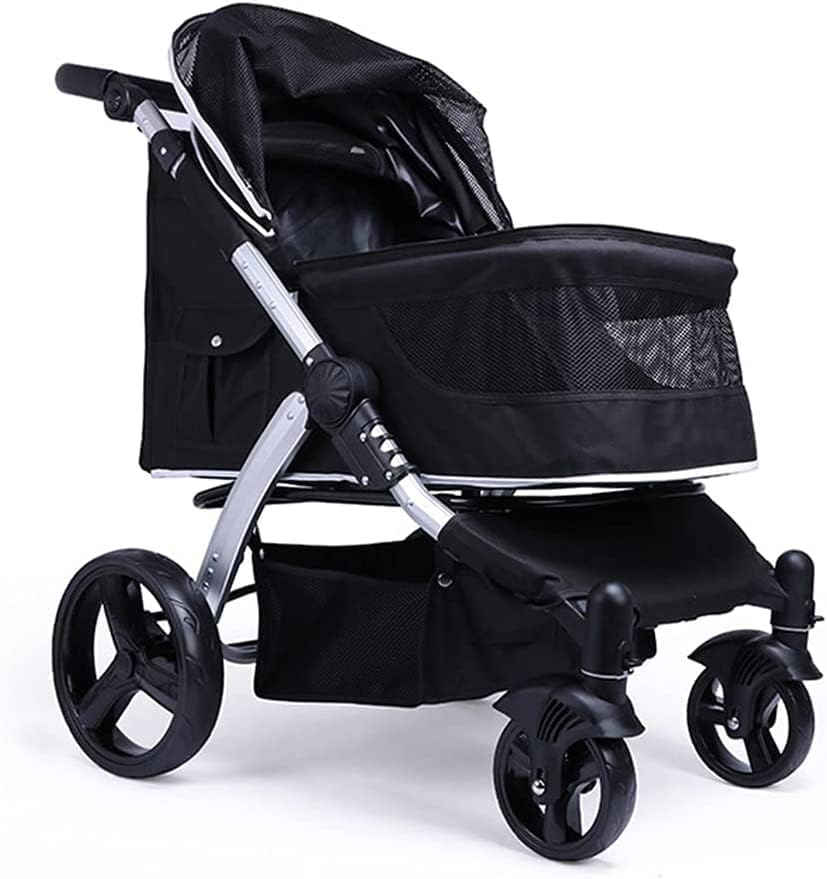 大型犬用犬用ベビーカー、ペットギアトラベルベビーカーキャリアペット犬猫用ベビーカー乳母車、2匹の猫用 オックスフォード布、ベビーカーアルミ合金負荷30kg (Color : Black)