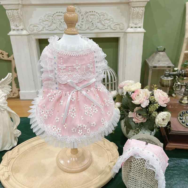 【 Xmya】 ペット 猫 犬 ウサギ 服 スカート ピンクデイジー ヨークシャー ビション
