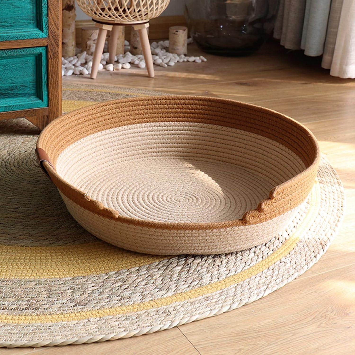 ペットベッド 夏用 犬猫用ベッド 竹編み 手編み 天然素材 ペットクッション 藤編み 柳編み 円形 通気性 ひんやり 寝床 猫ハウス 犬ハウス お洒落 ペットハウス ペット用寝袋 耐噛み もこもこ カ