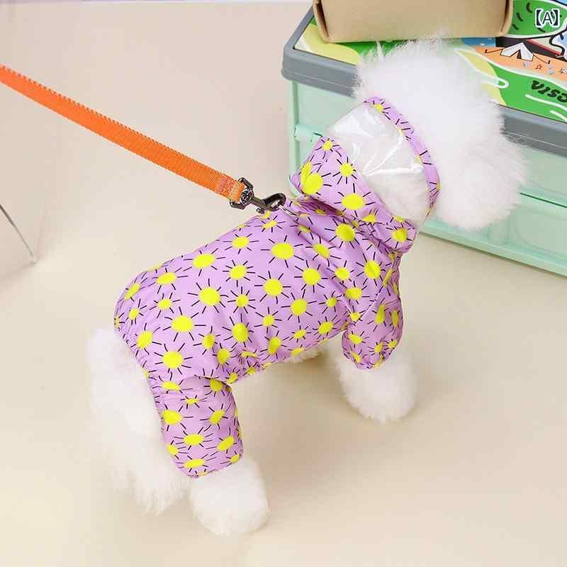 ワンちゃん用 かっぱ 犬 服 四 足 フード付き レインコート 防水 小型 ペット テディ ビション ポメラニアン 子犬 雨の 日 汚れ 防止
