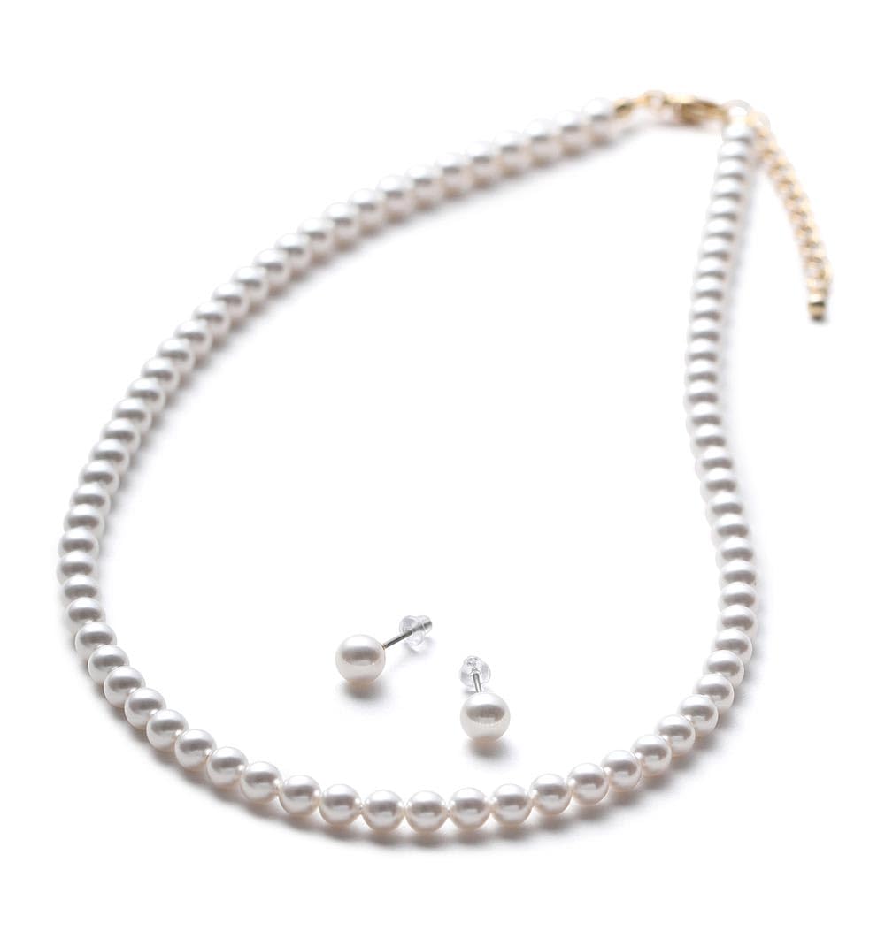 【送料無料】[VOTRE COUTURE] ベビーパール ネックレス ピアス イヤリング セット 5mm グランプレミアム 真珠 ホワイト シルバー ゴールド 色:チタンピアス(ゴールド)、サイズ:38cm